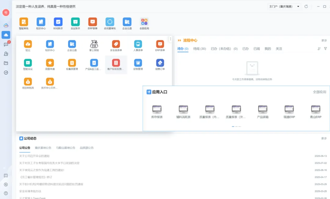 为了解决这些痛点,瑞通精工选择与云之家深度合作,以统一入口、业财融合、轻量构建为核心,全面推进企业协同与管理数字化转型。