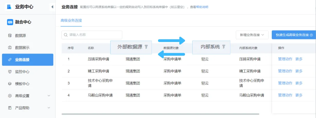 通过云之家平台,瑞通精工成功实现了采购申请与ERP系统的无缝对接。领导层能够随时随地通过移动端完成审批流程,彻底摆脱了固定办公地点的限制。以采购申请为代表的部分流程,直接从云之家录入,通过融合中心同步至ERP系统,显著提升了流程处理效率。