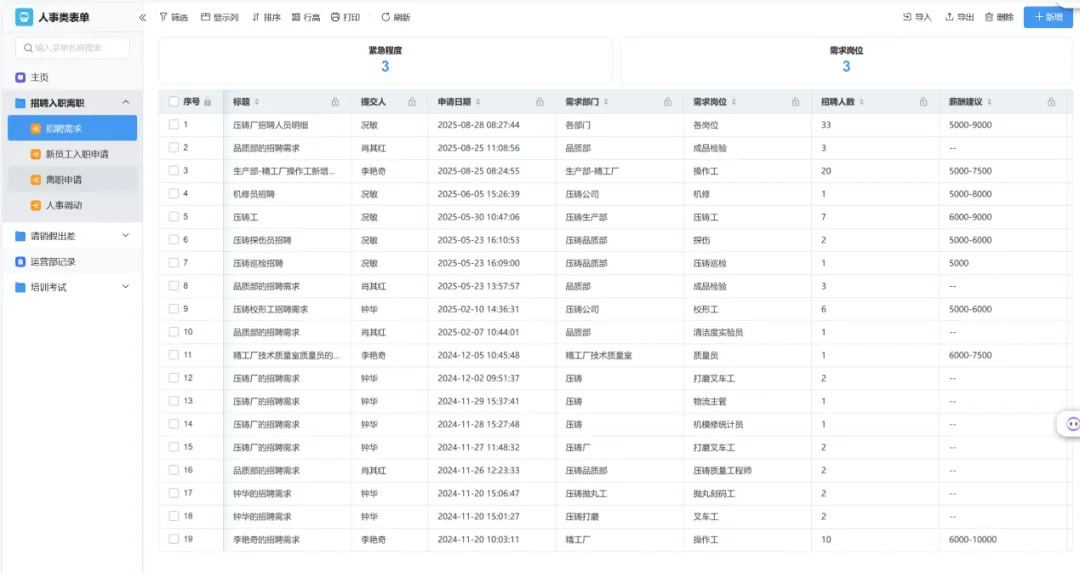 (2)轻云人事表单,替代HR软件的轻量级人事管理系统