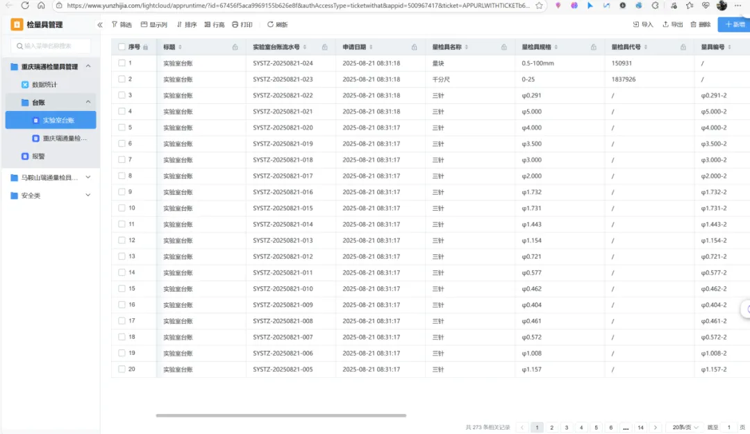 汽配行业的检量具管理也是日常业务中的重要工作,原来的流程也是线下纸质管理,一方面不方便查询和统计分析,另外一方面,无法针对性配置预警的提醒,容易导致业务动作不完整。使用轻云搭建了检量具管理应用之后,实验室、外检室、精工厂三大检量具台账记录有序而便捷,预警信息及时。另外一方面,也消除了地理距离较远的厂区之间的隔阂,提升了协作效率。