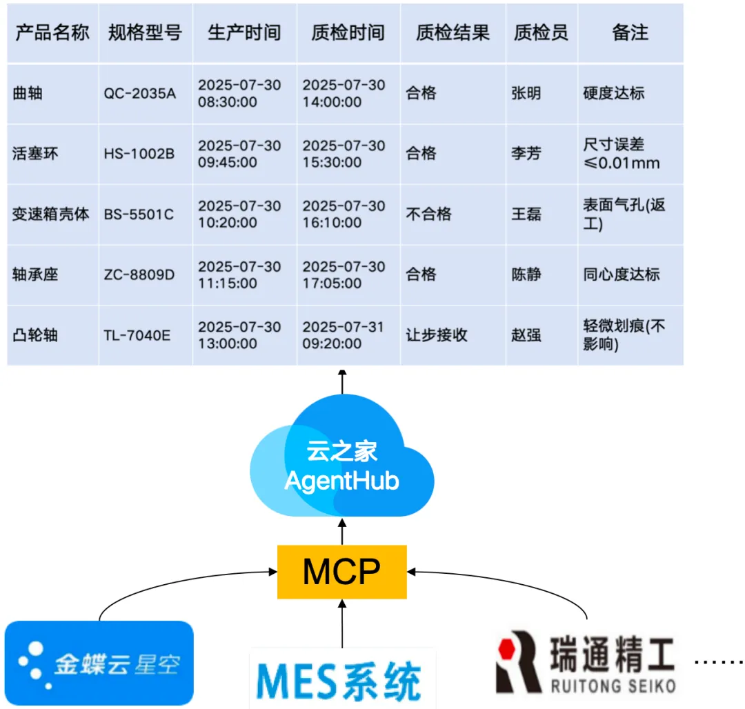 2025年,AI技术浪潮席卷制造业。瑞通精工正积极规划以云之家作为AI统一入口,打造“Agent Hub”。通过MCP(Model Control Protocol)协议,实现AI与物联网、生产检验数据等领域的深度融合,支持业务创新应用的敏捷开发和智能调度。