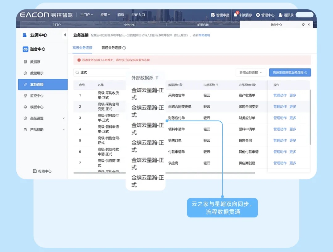 1.云之家与星瀚双向同步,流程与数据一体贯通