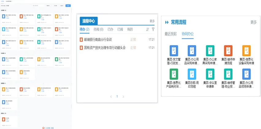 “江西建工云”打造了统一的流程中心,汇聚了1000多个各类业务流程,覆盖办文、办公、办会、采购、工程项目管理、工程项目采购等十余个大类。移动端能进行审批,业务、财务流程均统一推送至待办中心,便于通过快捷入口完成流程审批。
