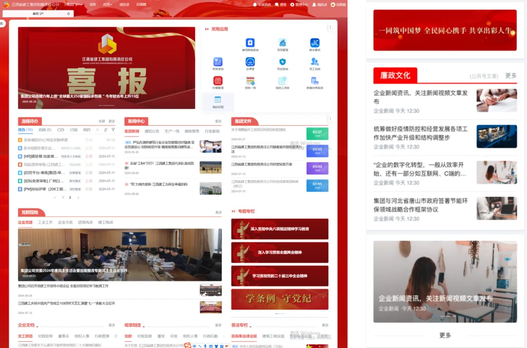 通过“江西建工云”门户,集团整合了EAS、S-HR、OA、PM等25个异构系统,实现身份认证、单点登录、统一待办。员工只需一次登录,即可畅享所有应用,极大提升了操作效率与用户体验。